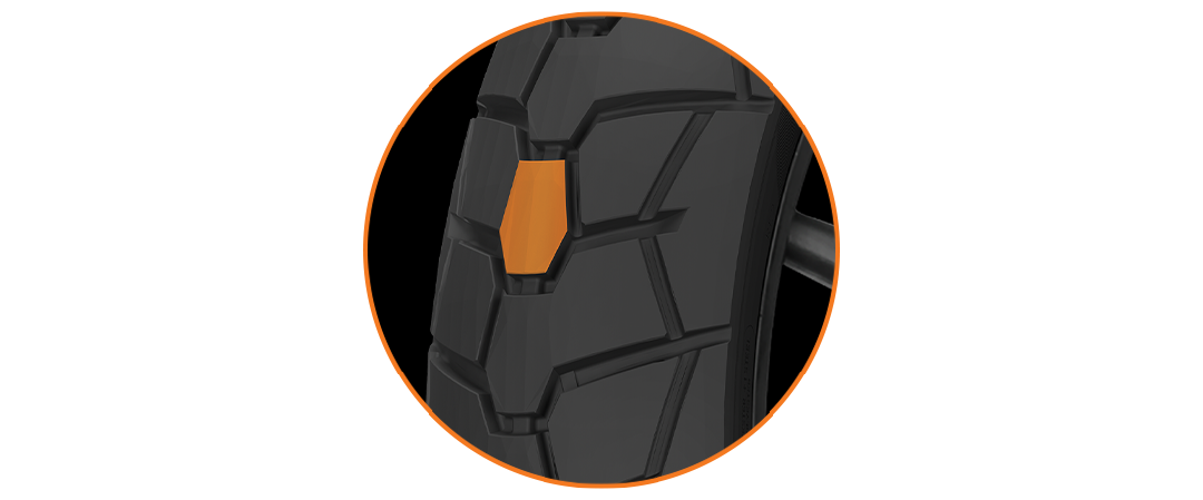 Optimized shape of the tread blocks for enhanced grip in offroad conditions.