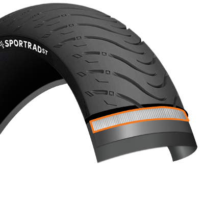Silica blended tread compound optimized to maintain a sporty riding style in all riding conditions.